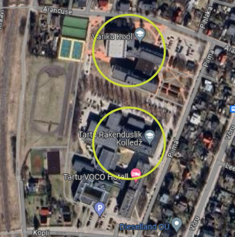 As shown on the map, Tartu Vocational College and Tartu Variku School are next to each other.