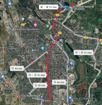 To check the public transportation departure times, you can either download an app called “Tartu bussiajad” or use Google Maps.
